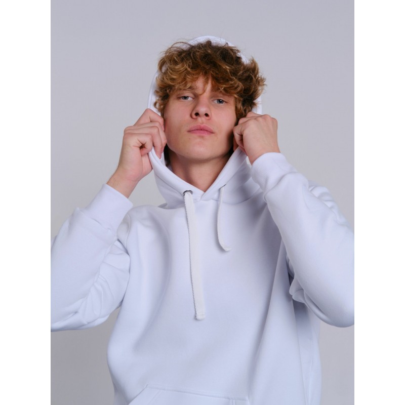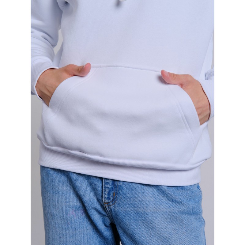 Классическая модель толстовки с капюшоном на шнурке и карманом спереди.